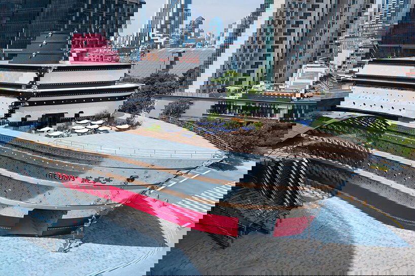 This impressive installation is a tribute to Louis Vuitton’s 19th-century history of crafting travel trunks, nodding to the brand’s heritage of transoceanic journeys. It also cleverly honours Shanghai’s own maritime spirit as a major port city. The exterior even looks like stacked vintage trunks, complete with a shimmering metallic LV monogram.
