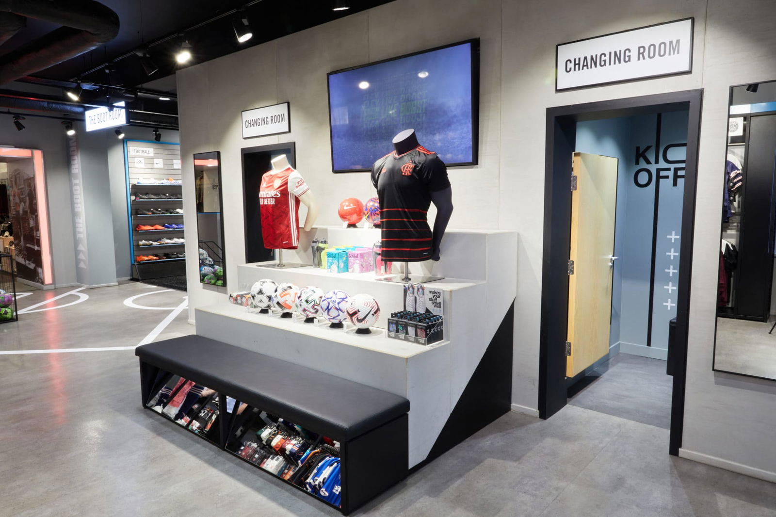 Well-known for its specialised football and rugby service, Greaves took the opportunity to relocate its popular football and rugby offering from the basement, into the heart of this two-story retail space on the first floor.