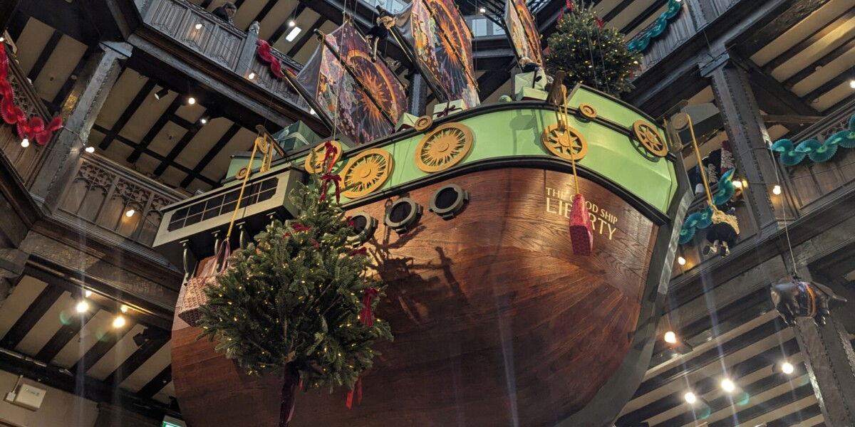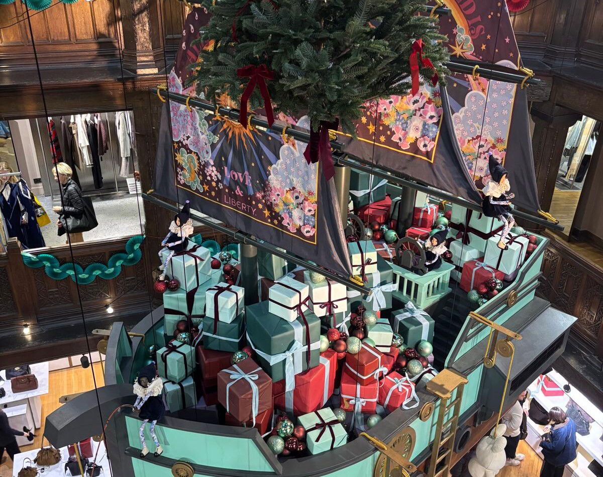 At Liberty London, the festive celebration is an ambitious, high-flying narrative built around their 150th anniversary. This year’s theme, “The Making of Christmas,” celebrates the store’s heritage of artisan craftsmanship and mischievous wonder. The exterior windows offer captivating glimpses into the elves’ workshops, chaotic but charming spaces where every gift is meticulously created, from glittering jewellery to bespoke fragrances. However, the true showstopper is the Central Atrium’s majestic installation: a handcrafted, levitating vessel named The Good Ship Liberty. Inspired by the store’s iconic golden galleon weathervane, this ‘crazy Christmas craft’ sails through the heart of the store, crewed by a whimsical team of elves created by Plunge Creations. This technical feat, involving carefully engineered pieces and overnight installation, transforms the vaulted space into a breathtaking grand finale. The entire spectacle is a powerful ode to the joy of making and giving, transforming the store into a vibrant, imaginative world where the line between retail and theatrical spectacle disappears entirely.