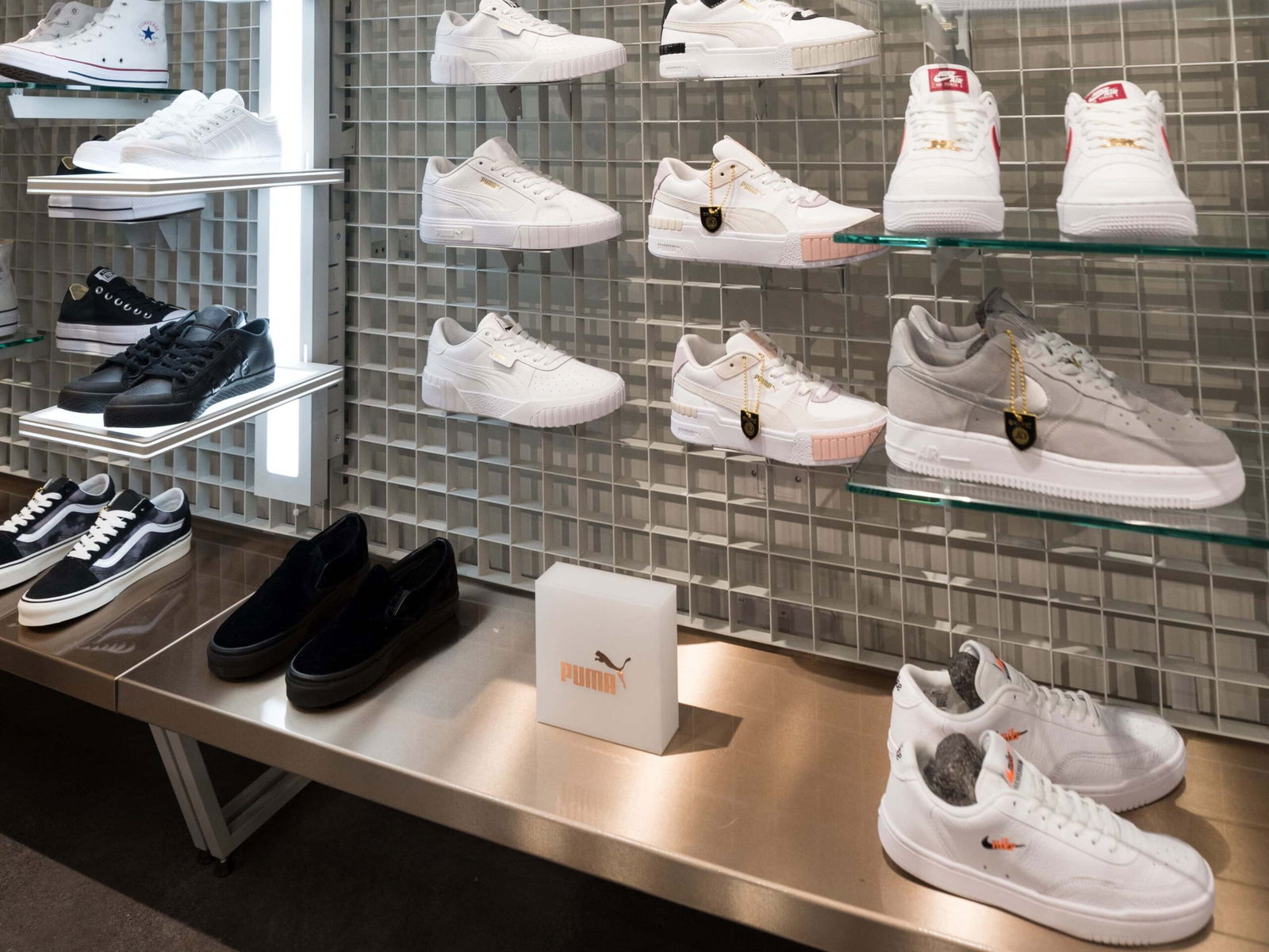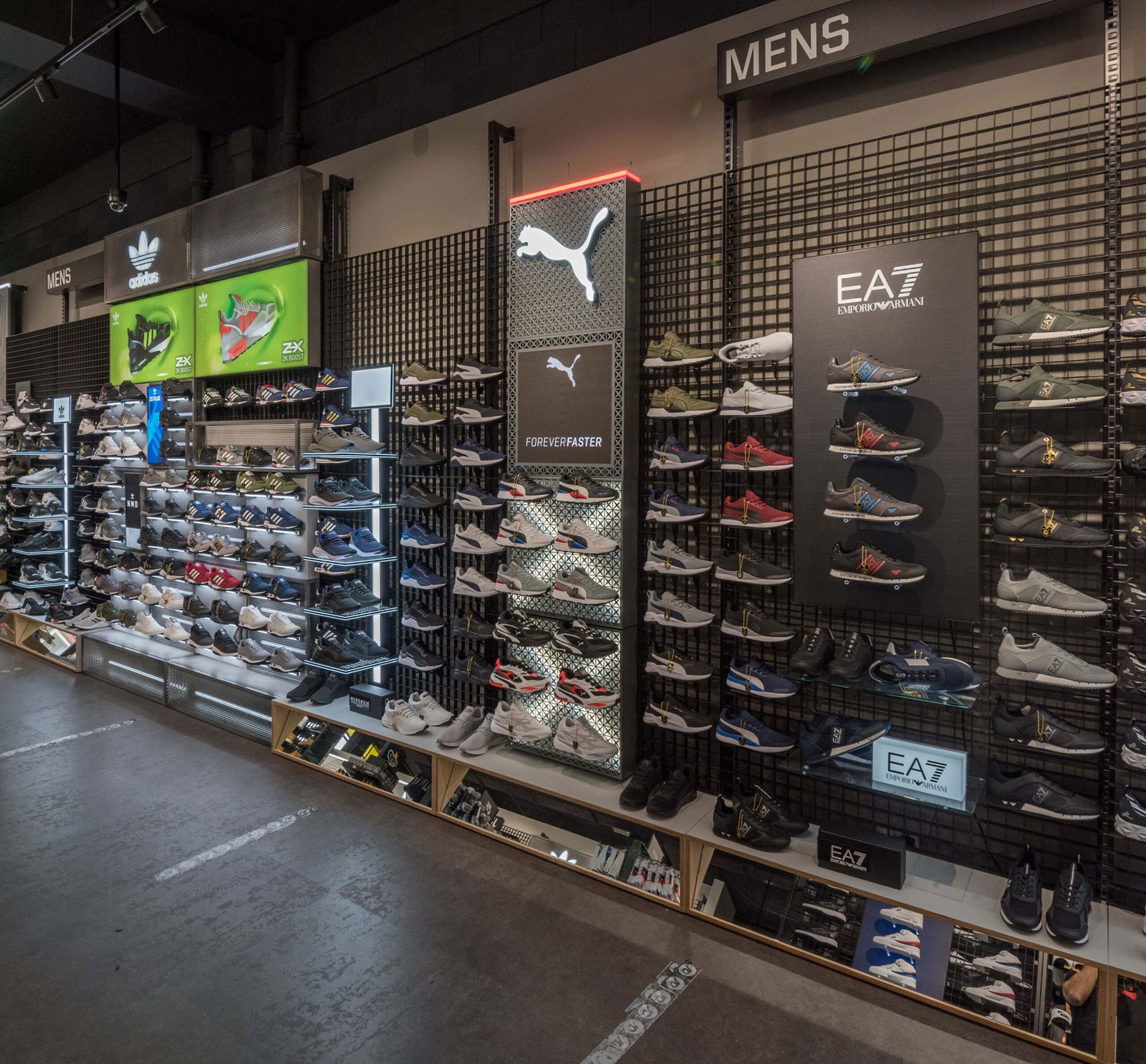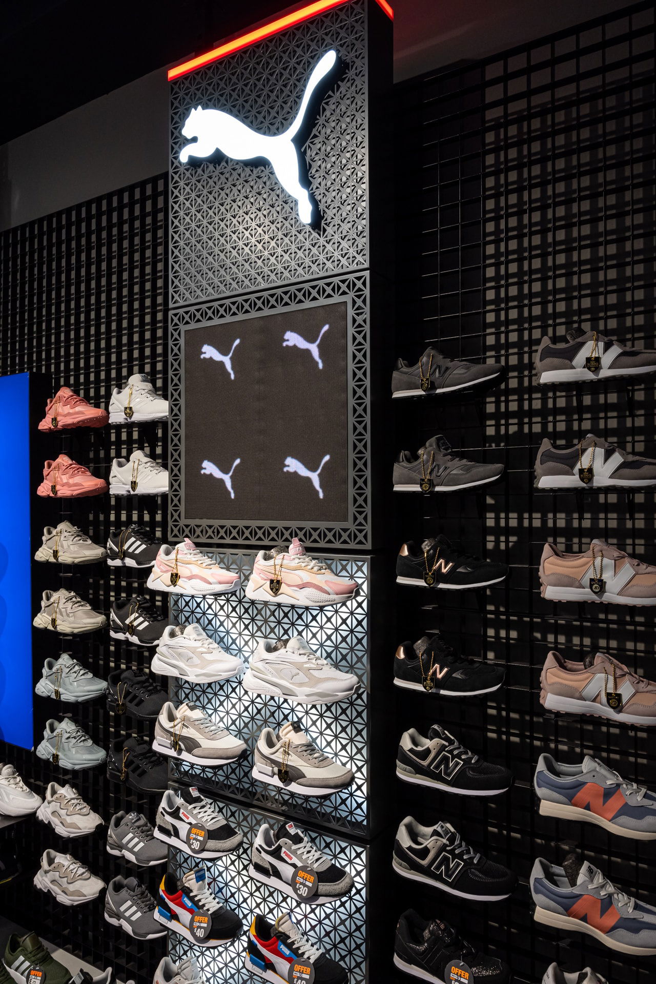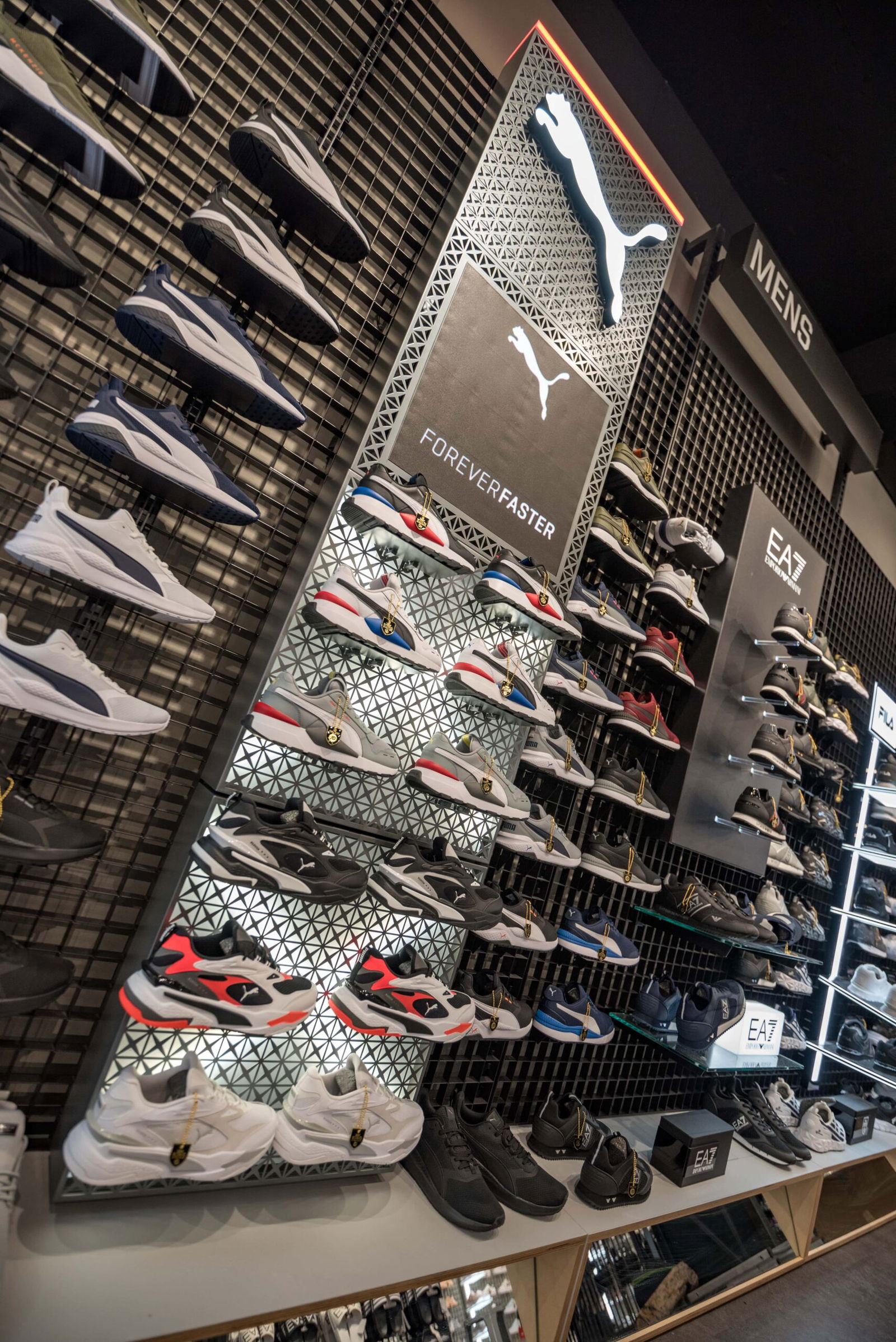The 47-store rollout consists of an assortment of contrasting footwear wall designs and configurations for the Men’s and Women’s footwear areas, with a modified version of the Men’s footwear wall used to display Puma’s Junior footwear offering.