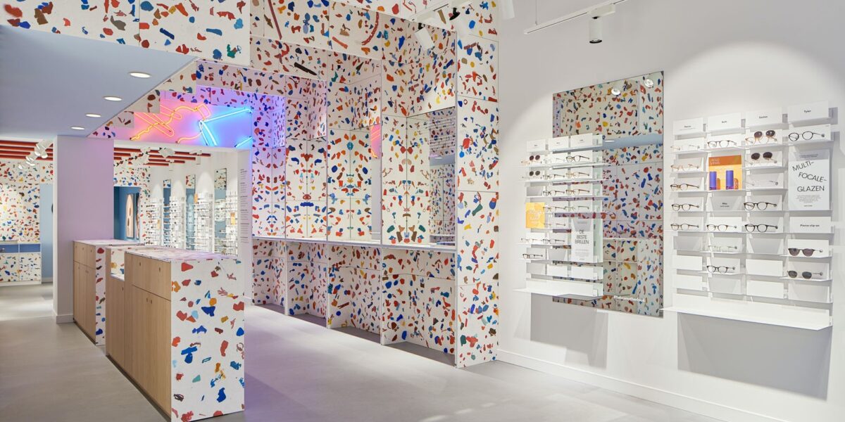 Rather than being designed to look like stores, their spaces evoke contemporary art galleries. The eyewear is displayed among themed sculptures and installations as though it is part of the artistic aesthetic. The London store is themed ‘Kung Fu’ and delivers an extra-terrestrial interpretation of martial arts over two floors through kinetic sculptures, eye-catching robotics, and unexpected material juxtapositions. A visit requires customers to journey through complex spaces where glasses and