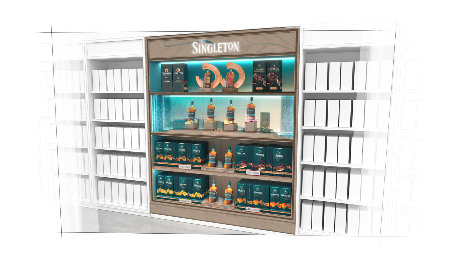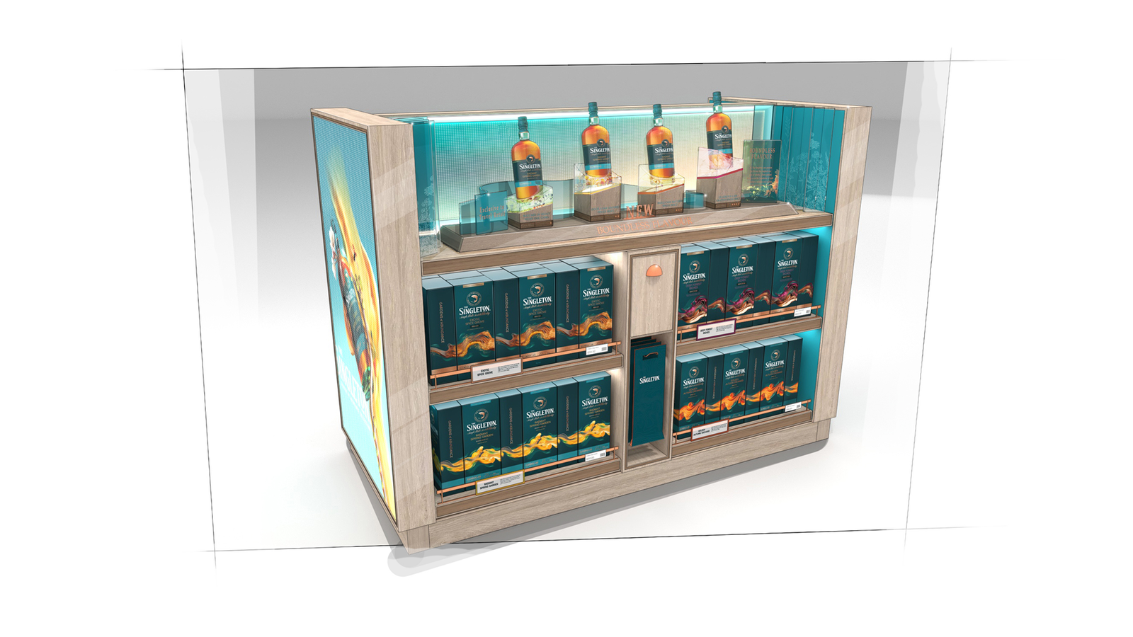 The Diageo Singleton team approached D4R to design a new retail identity for the GTR market and create a permanent display that expresses both the quality of the brand and a sense of deliciousness, without necessarily needing to taste the product.