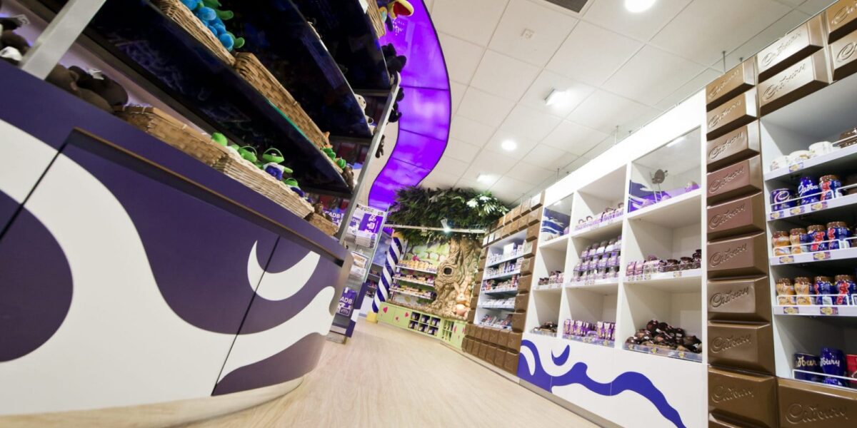 Interactive points, clever zoning and a sense of theatre create an experiential shopping journey. Cadbury’s fans can find themselves mesmerised by the swirl of purple overseeing the store and the decadence of the chocolate block unitary.