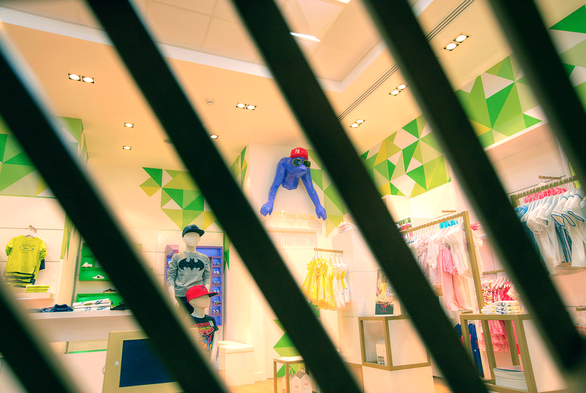With a saturated marketplace for childrenās fashion, Savanna chose a different route to bring their luxury clothing to the famous Kuwait mall. Wanting to eradicate the traditional concept of premium clothing set against a stark background, they were inspired by not only the eco-system of the African Savanna but the visual and interactive-led opportunities of the geometric shapes and animals. Concept credit ā TRC